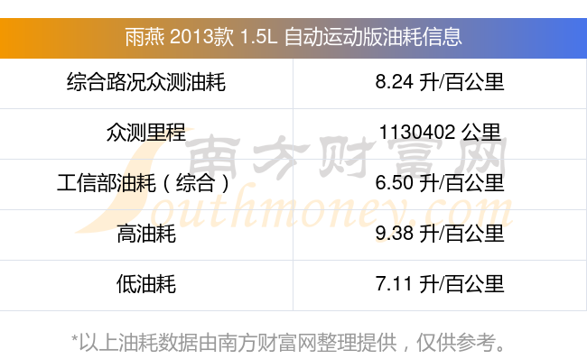 根據(jù)車主實(shí)測數(shù)據(jù),該車型低油耗為7.11升/百公里,高油耗為9.38升/百公里,綜合路況眾測油耗為8.24升/百公里,工信部綜合油耗為6.50升/百公里。