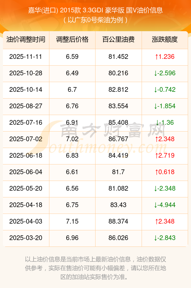 該車型目前采用的是3.3L280馬力V6自然吸氣發(fā)動(dòng)機(jī),6擋手自一體自動(dòng)檔的變速箱,按0號(hào)柴油當(dāng)前最新價(jià)格6.59元/升來計(jì)算(以廣東為例),平均油費(fèi)為0.814524元每公里。廠家參考價(jià)為34.24萬元。