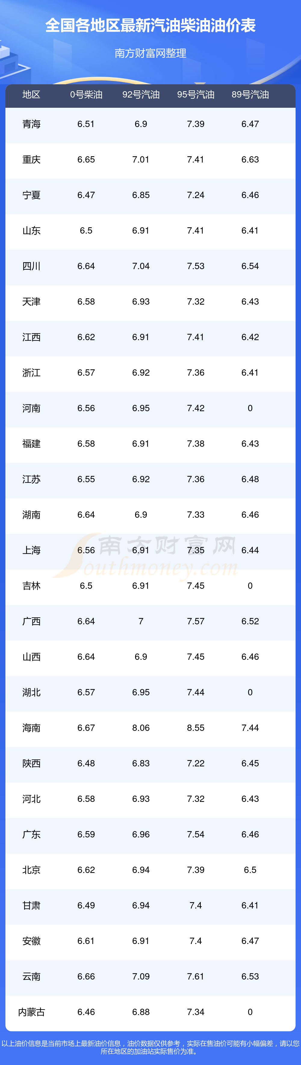 附:最新全國(guó)汽油、柴油價(jià)格一覽表