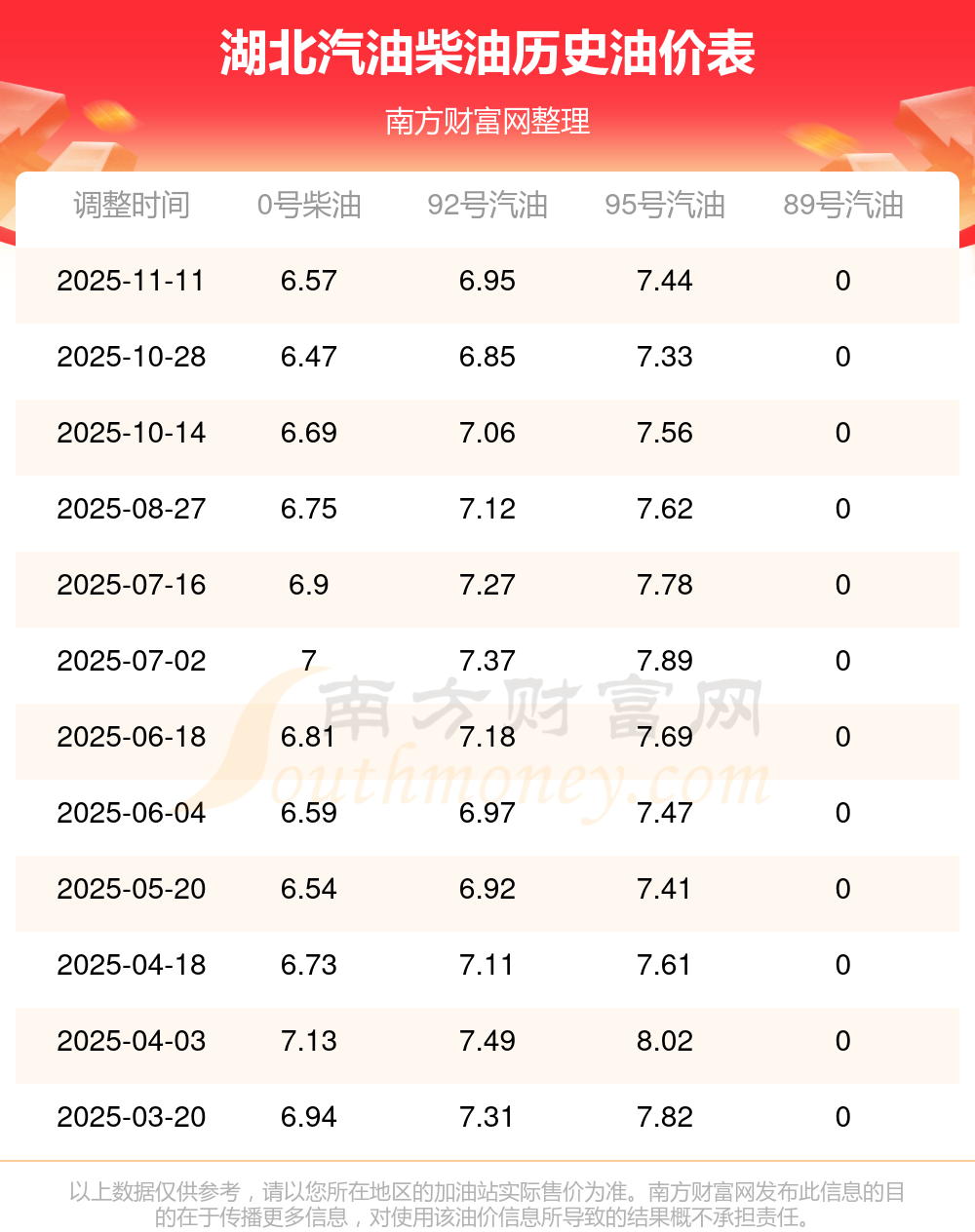 2025年湖北汽油價(jià)格一覽表