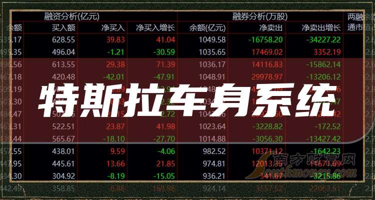 據(jù)南方財(cái)富網(wǎng)概念查詢工具數(shù)據(jù)顯示,相關(guān)特斯拉車身系統(tǒng)上市公司有: