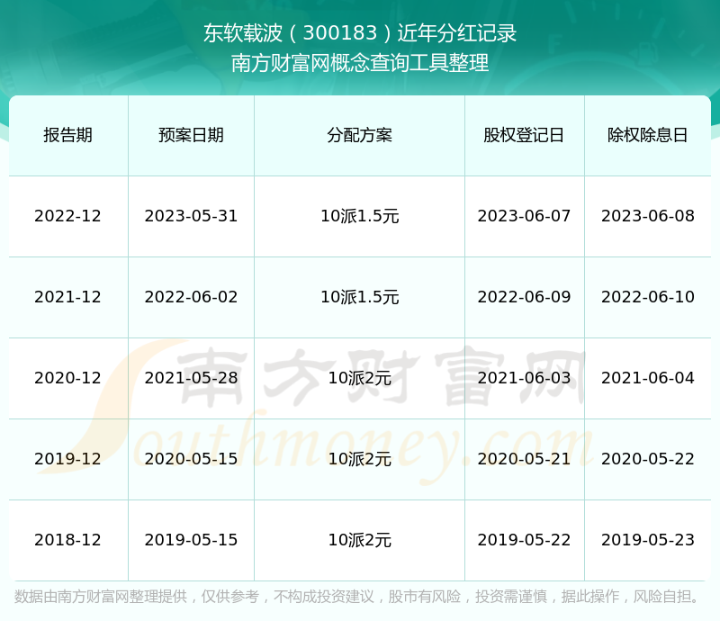 東軟載波最新一次公布的分紅方案:10派1.5元。