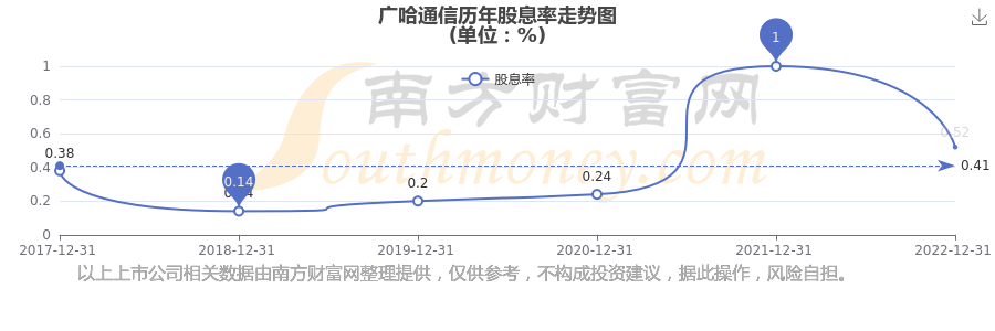 近年廣哈通信年度股息率走勢(shì)如下圖: