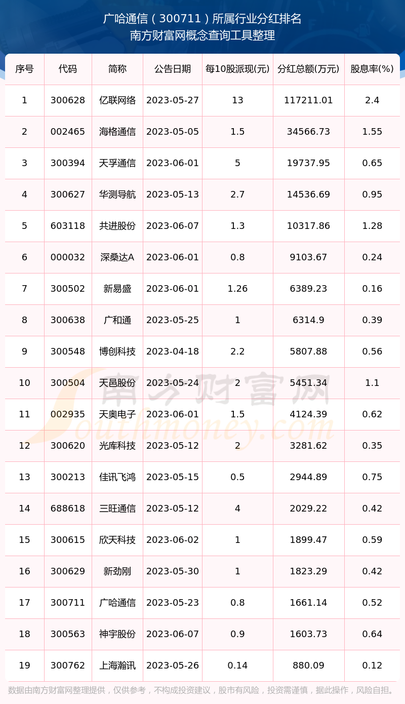 二、廣哈通信300711行業(yè)分紅排名
