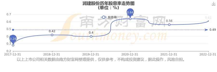 近年潤建股份年度股息率走勢(shì)如下圖: