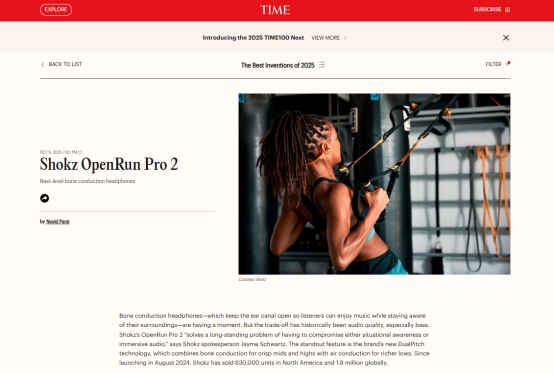 韶音OpenRun Pro 2上榜《時(shí)代》2025年度最佳發(fā)明