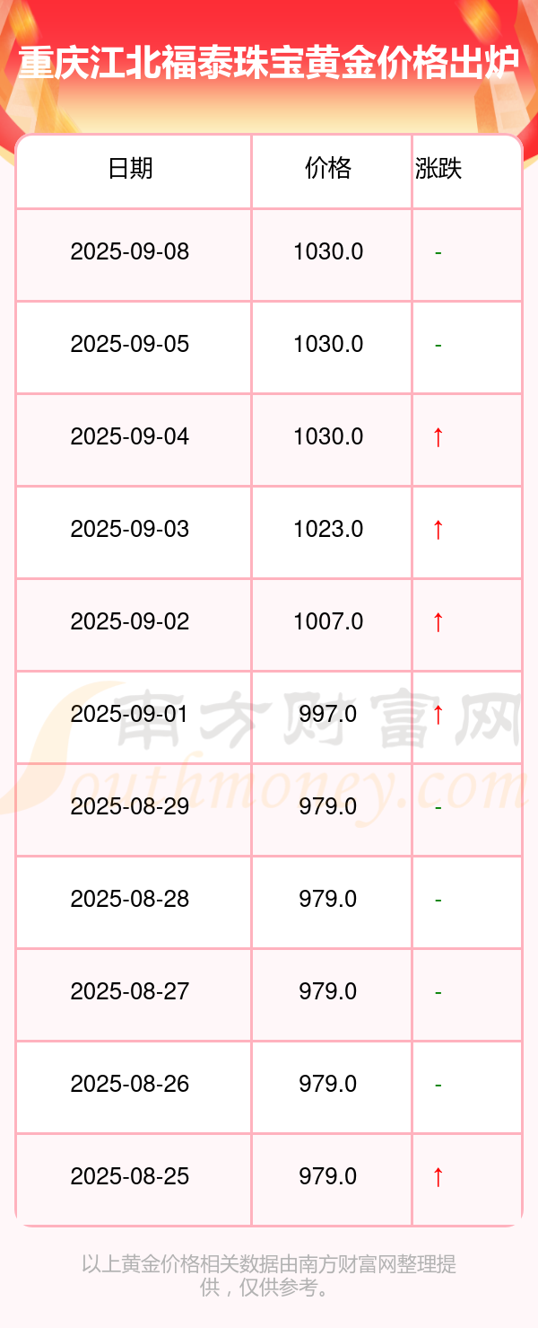 2025/09/08| 重慶江北福泰珠寶今日黃金價格多少錢一克,黃金價格最新價格公布