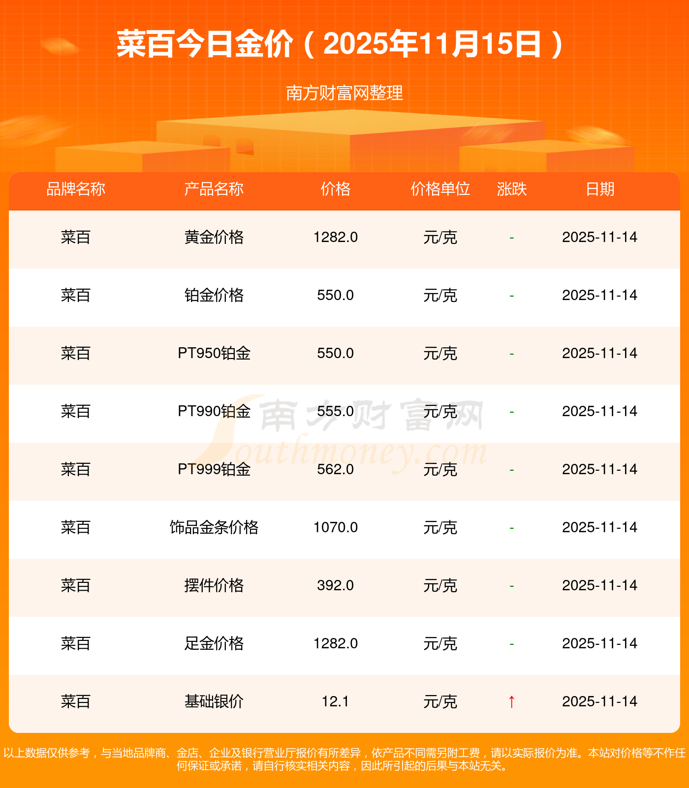 黃金價格1333.0元/克,鉑金價格646.0元/克,飾品金價(內(nèi)地)1333.0元/克,黃金飾品(香港)46320.0,鉑金價格(香港)18410.0,金條價格(香港)41780.0,金條金價(內(nèi)地)1167.0元/克,黃金價格1322.0元/克,鉑金價格600.0元/克,足金價格1322.0元/克,黃金價格1295.0元/克。