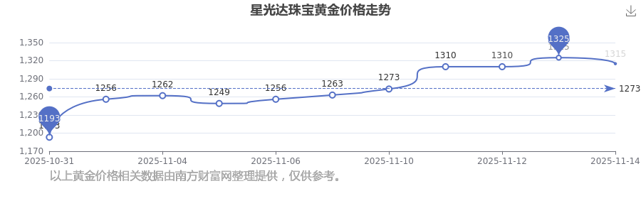 今日黃金價格查詢_現(xiàn)在金價黃金一克多少錢,黃金價格是多少錢一克?黃金屬于優(yōu)良的導(dǎo)電導(dǎo)熱材料,具有良好的導(dǎo)熱特性。電子工業(yè)中的特殊電路設(shè)計常采用它,鑒于其化學(xué)穩(wěn)定性高、抗氧化性強,能夠制作高精度電子元件。1315.0元/克的價格,是星光達珠寶今日 黃金價格的最新行情。
