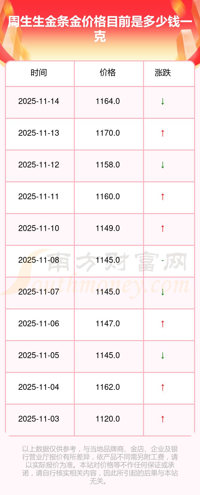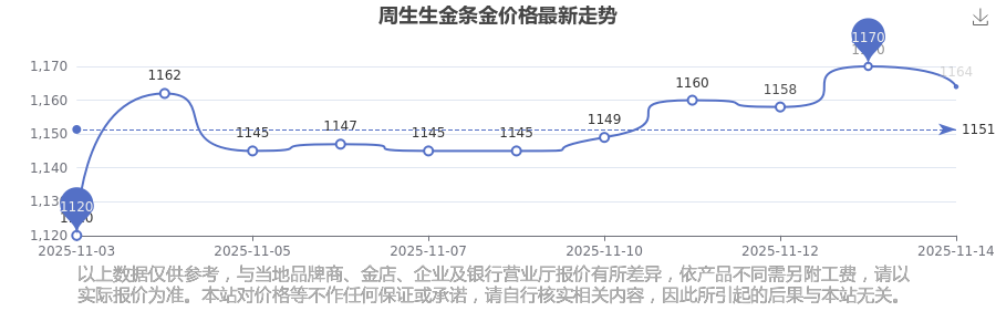 今日周生生金條金價(jià)格是1164.0元/克。
