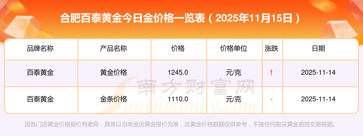 今日黃金價(jià)格查詢_現(xiàn)在金價(jià)黃金一克多少錢,黃金價(jià)格是多少錢一克?2025年11月15日合肥百泰黃金每克黃金的市場(chǎng)價(jià)格是多少:黃金價(jià)格1333.0元/克,鉑金價(jià)格646.0元/克,飾品金價(jià)(內(nèi)地)1333.0元/克,黃金飾品(香港)46320.0,鉑金價(jià)格(香港)18410.0,金條價(jià)格(香港)41780.0,金條金價(jià)(內(nèi)地)1167.0元/克,黃金價(jià)格1322.0元/克,鉑金價(jià)格600.0元/克,足金價(jià)格1322.0元/克,黃金價(jià)格1295.0元/克。