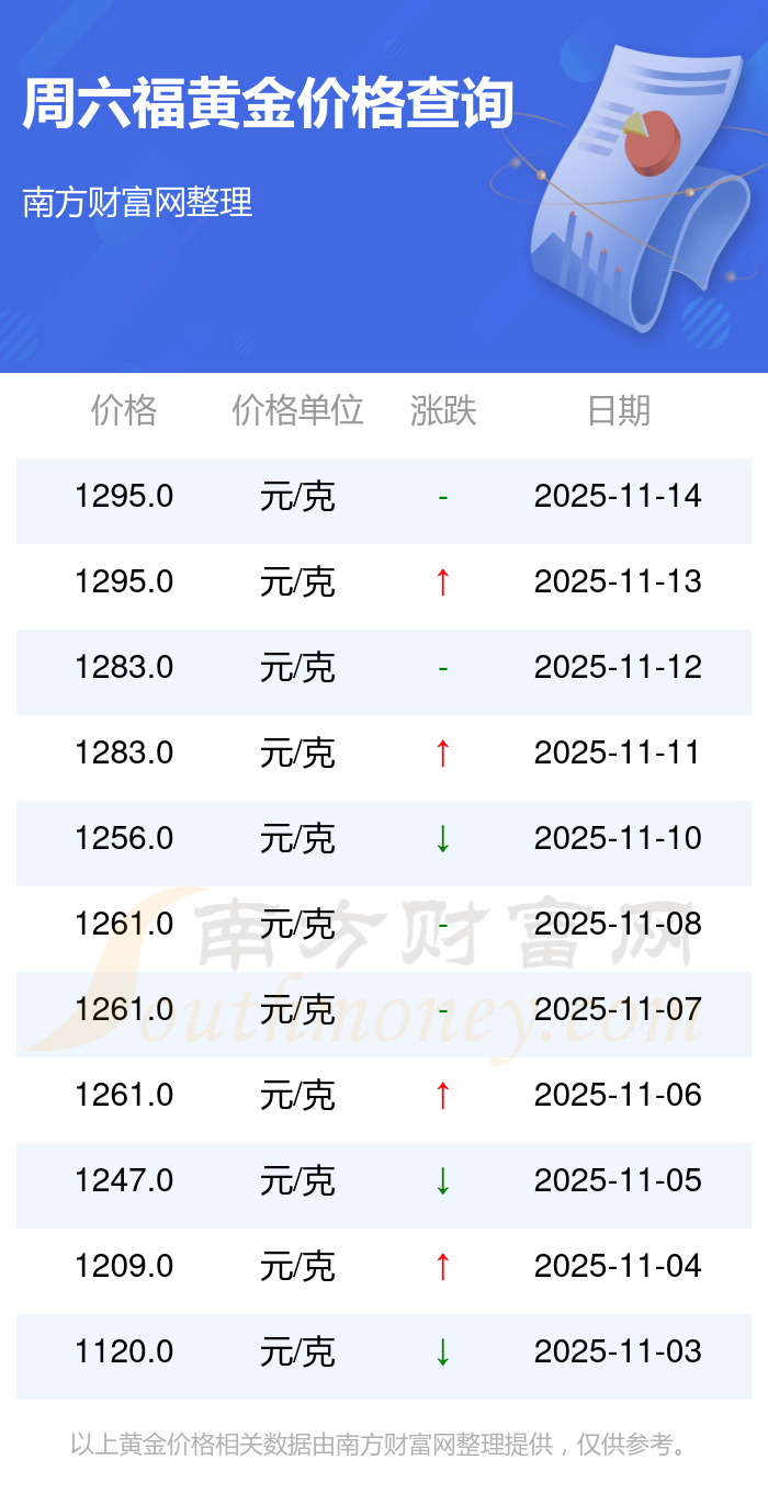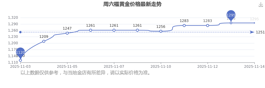 2025年11月15日周六福黃金價(jià)格最新是1295.0元/克。