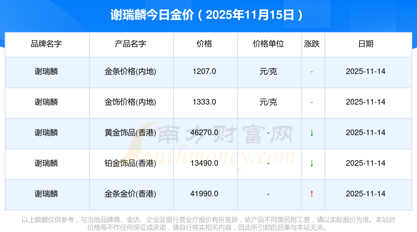 2025年謝瑞麟今日黃金價(jià)格查詢_謝瑞麟今天黃金最新價(jià)格表,一起來看看吧!