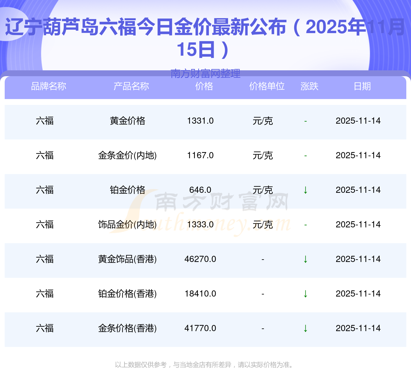 遼寧葫蘆島六福今日一克黃金價值幾何?
