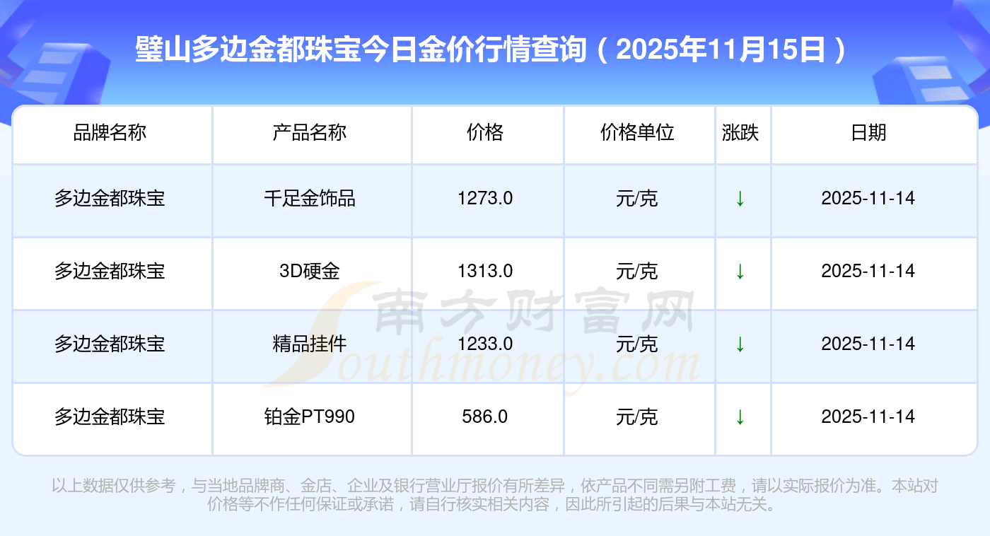 2025年11月15日多邊金都珠寶黃金價格多少錢一克_今日璧山多邊金都珠寶金價表一覽