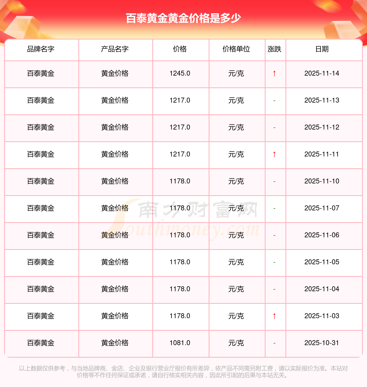 今天百泰黃金黃金價(jià)格每克多少錢,最新百泰黃金黃金價(jià)格表,一起來看看吧!