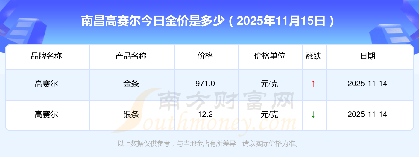 因各門店黃金價格報價有差異,具體以當?shù)亟鸬挈S金報價為準,此黃金價格數(shù)據(jù)僅供參考,不做任何購買黃金首飾交易根據(jù)。