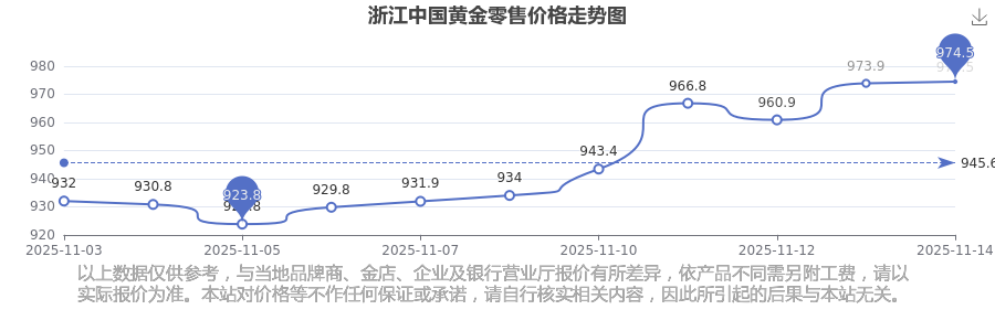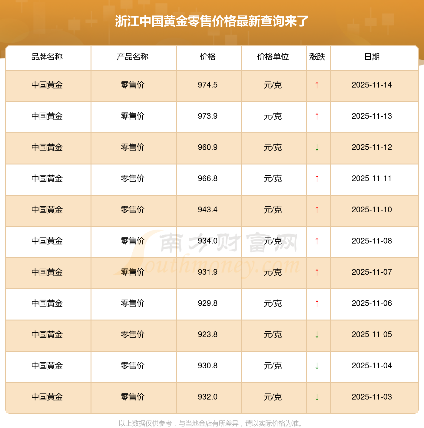 974.5元/克,這是浙江中國黃金于 2025年11月15日所定的零售價(jià)格。