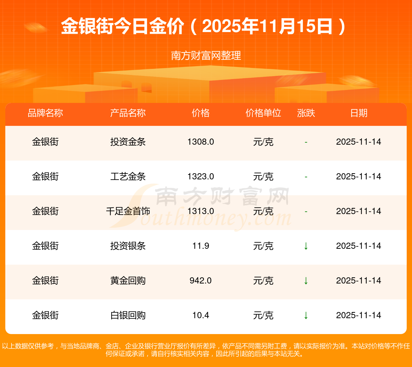 以上數(shù)據(jù)僅供參考,與當(dāng)?shù)仄放粕獭⒔鸬、企業(yè)及銀行營業(yè)廳報價有所差異,依產(chǎn)品不同需另附工費(fèi),請以實(shí)際報價為準(zhǔn)。本站對價格等不作任何保證或承諾,請自行核實(shí)相關(guān)內(nèi)容,因此所引起的后果與本站無關(guān)。