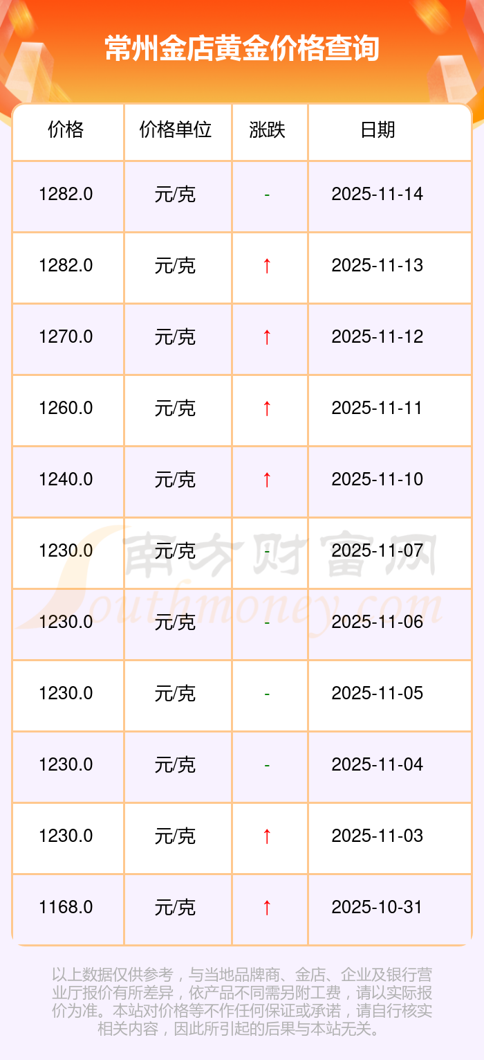 最新數(shù)據(jù)表明,常州金店今日 黃金價格為1282.0元/克。