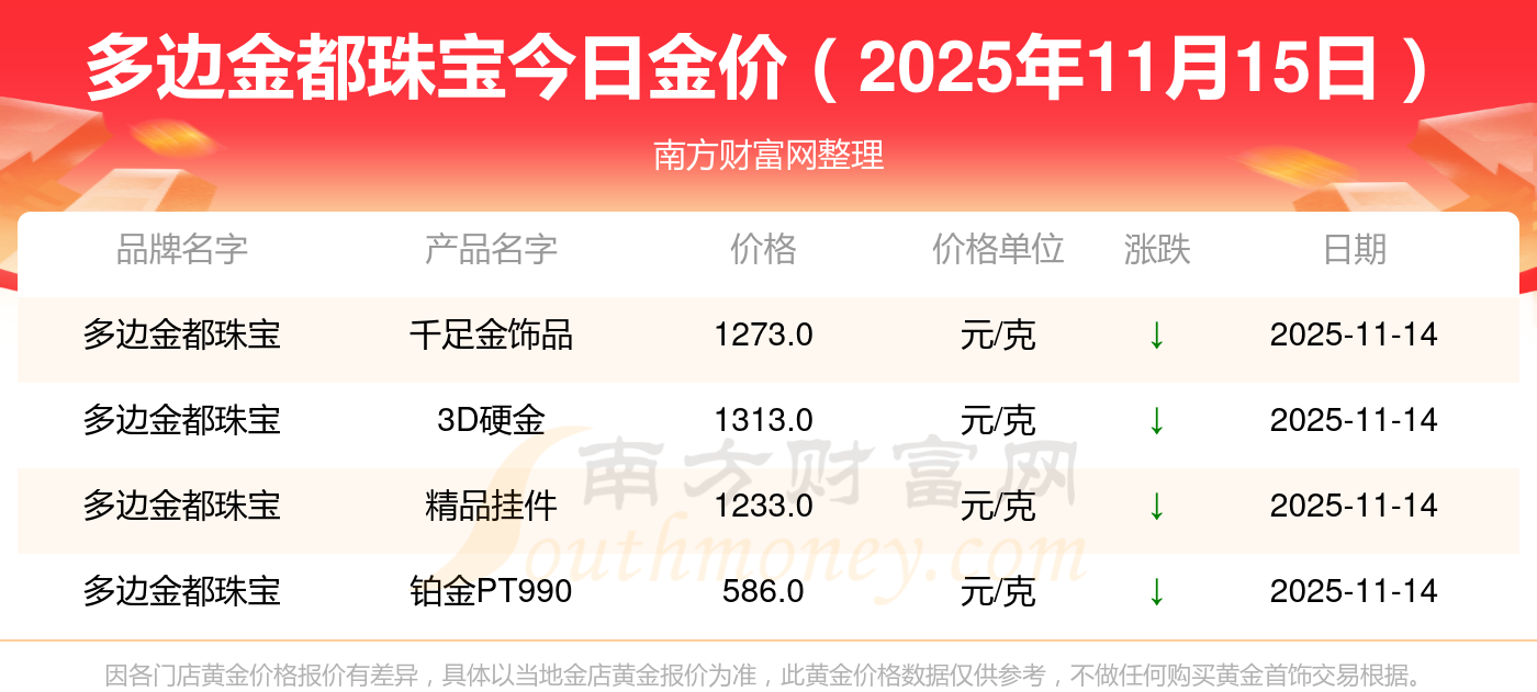 多邊金都珠寶今天的黃金價值幾何?詳情如下:
