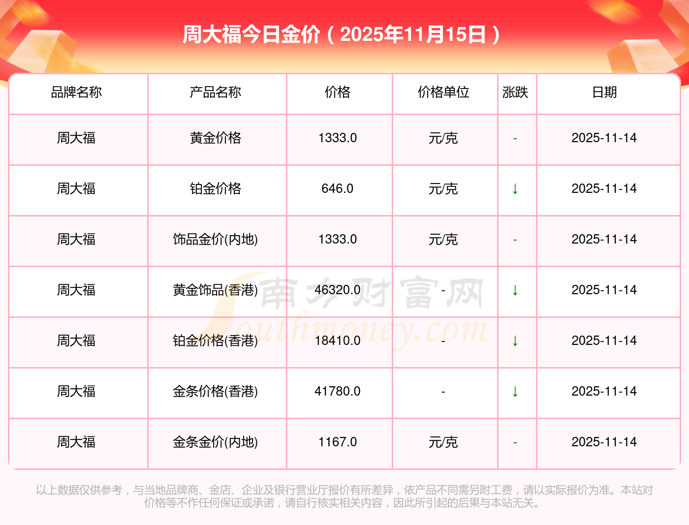 你了解周大福金價(jià)今日價(jià)格嗎?以下是詳情數(shù)據(jù):黃金價(jià)格1333.0元/克,鉑金價(jià)格646.0元/克,飾品金價(jià)(內(nèi)地)1333.0元/克,黃金飾品(香港)46320.0,鉑金價(jià)格(香港)18410.0,金條價(jià)格(香港)41780.0,金條金價(jià)(內(nèi)地)1167.0元/克,黃金價(jià)格1322.0元/克,鉑金價(jià)格600.0元/克,足金價(jià)格1322.0元/克,黃金價(jià)格1295.0元/克。