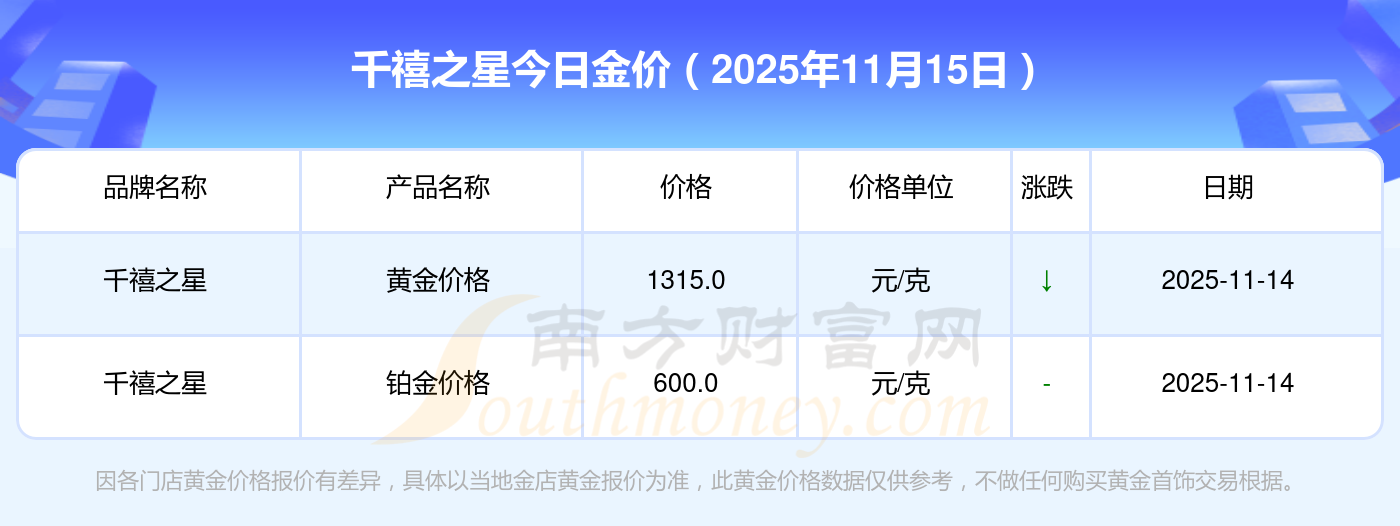 千禧之星今日金價(jià)查詢