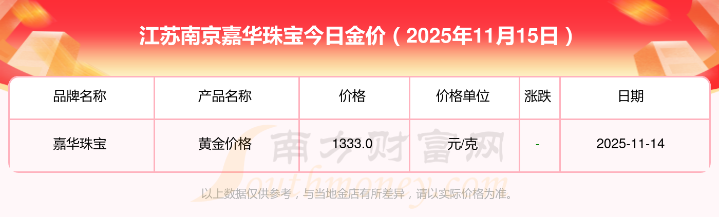 江蘇南京嘉華珠寶每克黃金的價(jià)格是多少?