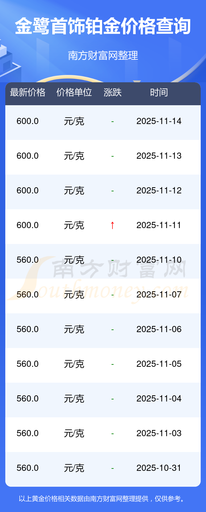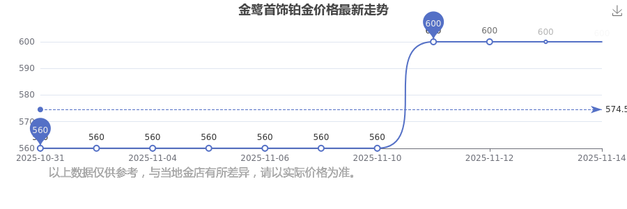 據(jù)了解,金鷺首飾今日鉑金價(jià)格為600.0元/克。