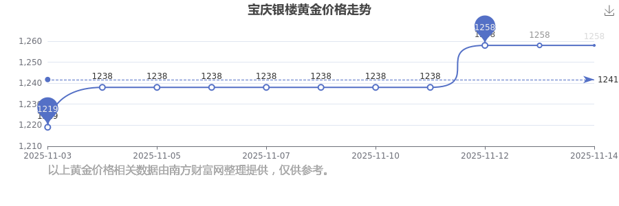今日寶慶銀樓黃金價(jià)格最新價(jià)格為1258.0元/克。
