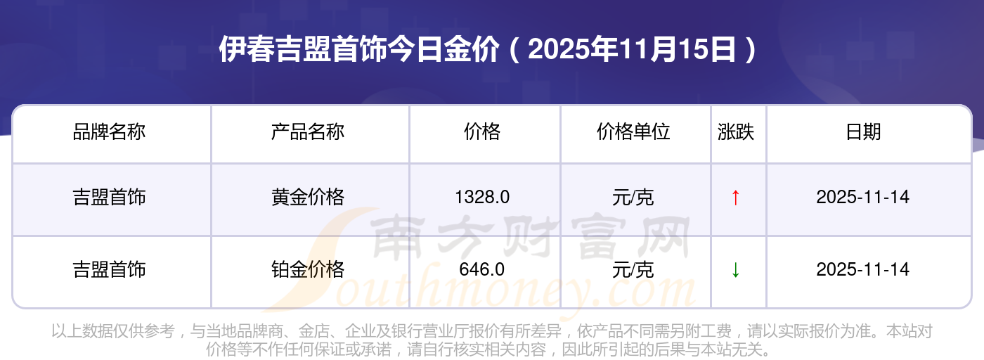 今日伊春吉盟首飾最新黃金價格查詢(2025年11月15日吉盟首飾黃金首飾多少錢一克)