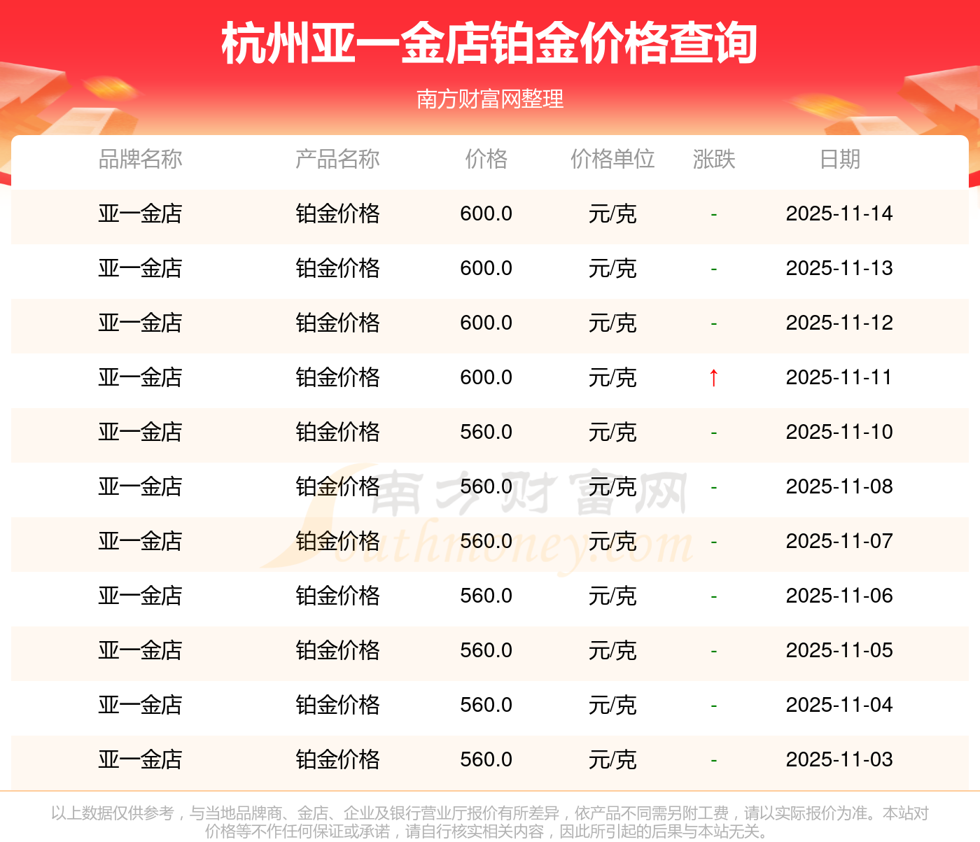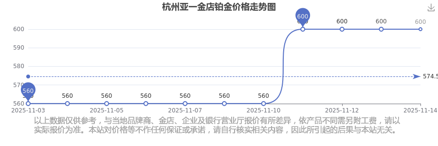 今日杭州亞一金店鉑金價(jià)格:600.0元/克。