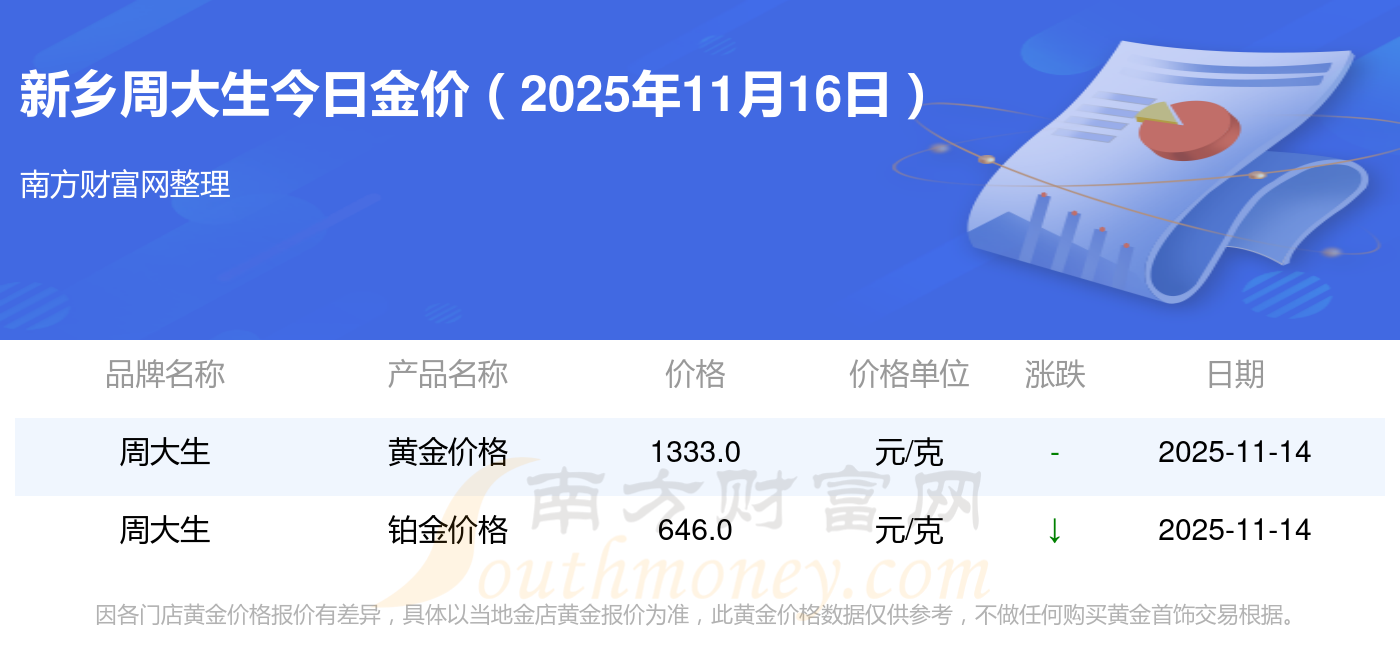 2025年11月16日新鄉(xiāng)周大生今日價(jià)格:黃金價(jià)格1333.0元/克,鉑金價(jià)格646.0元/克,飾品金價(jià)(內(nèi)地)1333.0元/克,黃金飾品(香港)46320.0,鉑金價(jià)格(香港)18410.0,金條價(jià)格(香港)41780.0,金條金價(jià)(內(nèi)地)1167.0元/克,黃金價(jià)格1322.0元/克,鉑金價(jià)格600.0元/克,足金價(jià)格1322.0元/克,黃金價(jià)格1295.0元/克。