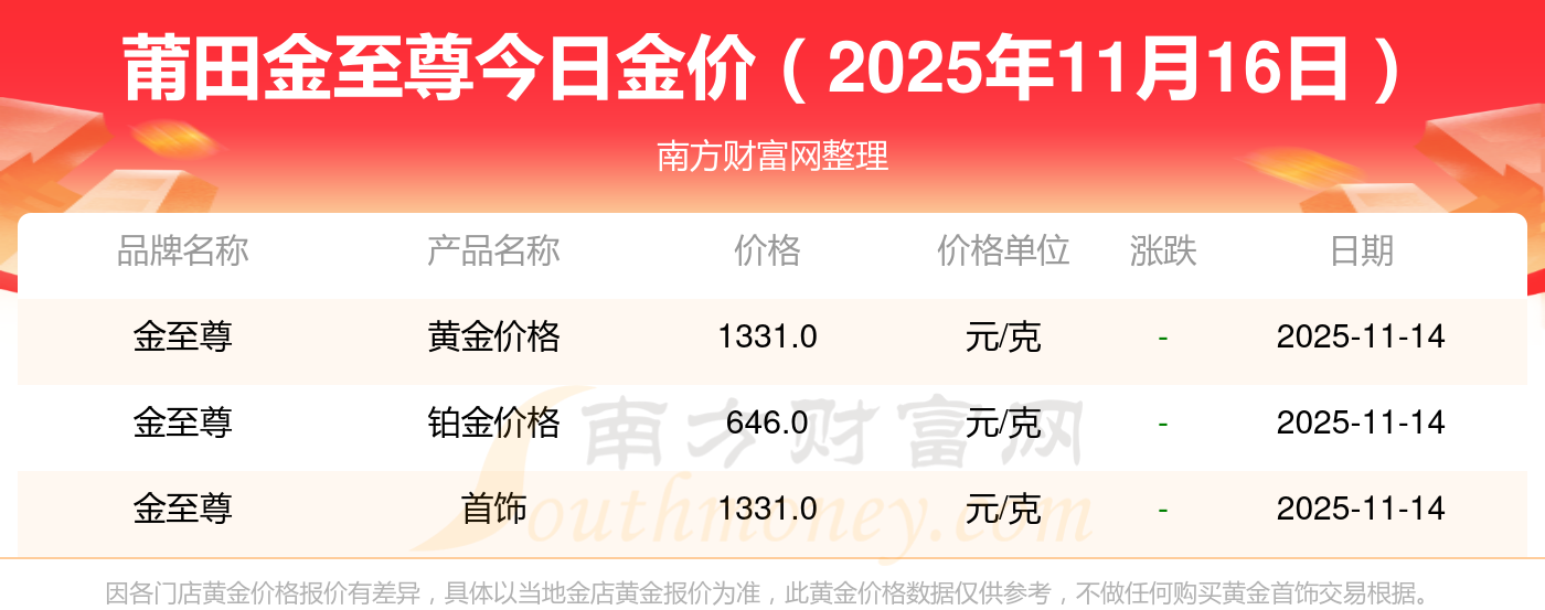 2025年11月16日莆田金至尊一克黃金對應(yīng)的價(jià)格是多少?黃金價(jià)格1333.0元/克,鉑金價(jià)格646.0元/克,飾品金價(jià)(內(nèi)地)1333.0元/克,黃金飾品(香港)46320.0,鉑金價(jià)格(香港)18410.0,金條價(jià)格(香港)41780.0,金條金價(jià)(內(nèi)地)1167.0元/克,黃金價(jià)格1322.0元/克,鉑金價(jià)格600.0元/克,足金價(jià)格1322.0元/克,黃金價(jià)格1295.0元/克。