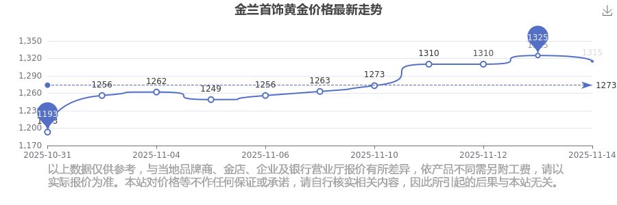 今日黃金價格情況如何?此刻黃金一克要多少錢?屬于優(yōu)良導(dǎo)電導(dǎo)熱材料的黃金,具備良好的導(dǎo)熱特性。鑒于其化學(xué)穩(wěn)定性高、抗氧化性強,能夠制作高精度電子元件,故而在電子工業(yè)的特殊電路設(shè)計中常用到它。2025年11月16日金蘭首飾黃金價格是1315.0元/克。
