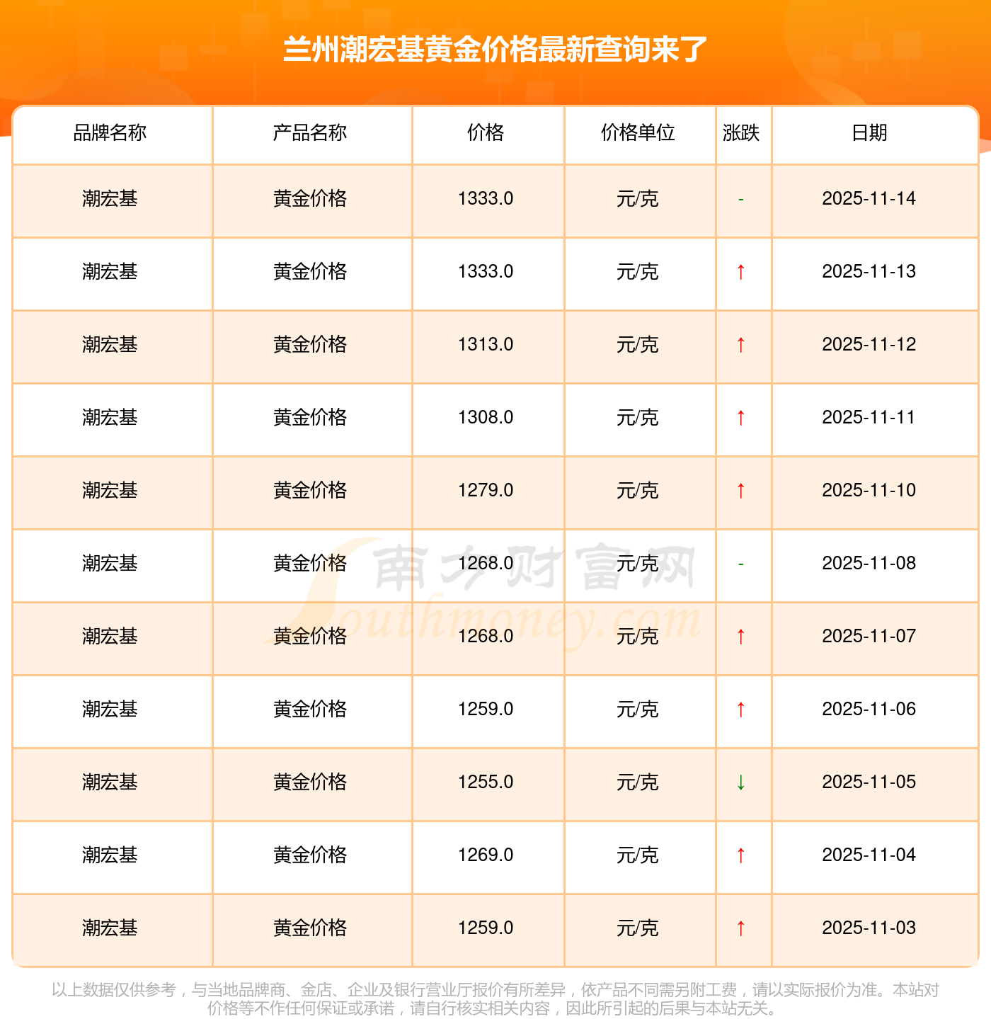 每克黃金在市面上的價(jià)格是怎樣的,今日不同品牌黃金價(jià)格匯總表,今日蘭州潮宏基黃金價(jià)格圖表