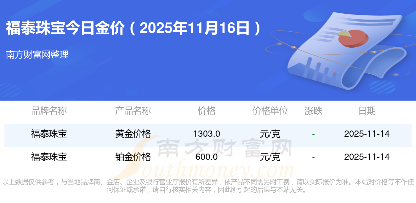 2025年11月16日周大福、周大福、周大福、周大福、周大福、周大福、周大福、老鳳祥、老鳳祥、老鳳祥、周六福等各大金店品牌黃金價格最新價格如下:周大福黃金價格1333.0元/克,周大福鉑金價格646.0元/克,周大福飾品金價(內(nèi)地)1333.0元/克,周大福黃金飾品(香港)46320.0,周大福鉑金價格(香港)18410.0,周大福金條價格(香港)41780.0,周大福金條金價(內(nèi)地)1167.0元/克,老鳳祥黃金價格1322.0元/克,老鳳祥鉑金價格600.0元/克,老鳳祥足金價格1322.0元/克,周六福黃金價格1295.0元/克。