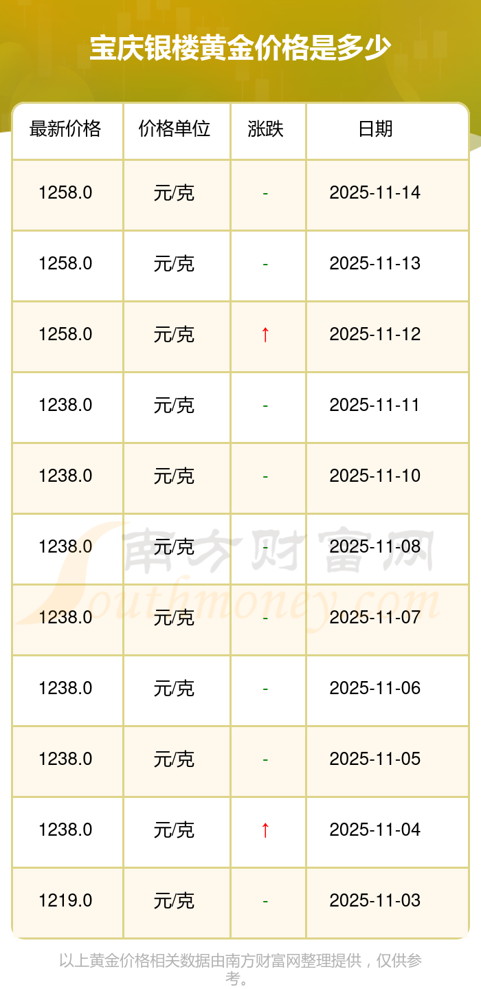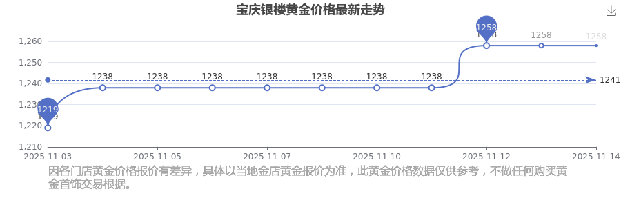 今日寶慶銀樓黃金價(jià)格:1258.0元/克。