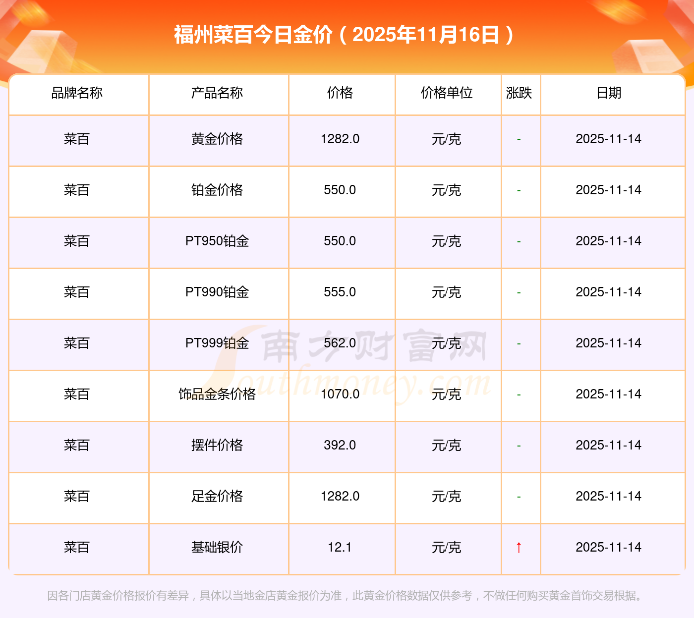 以上數(shù)據(jù)僅供參考,與當(dāng)?shù)亟鸬暧兴町悾?qǐng)以實(shí)際價(jià)格為準(zhǔn)。