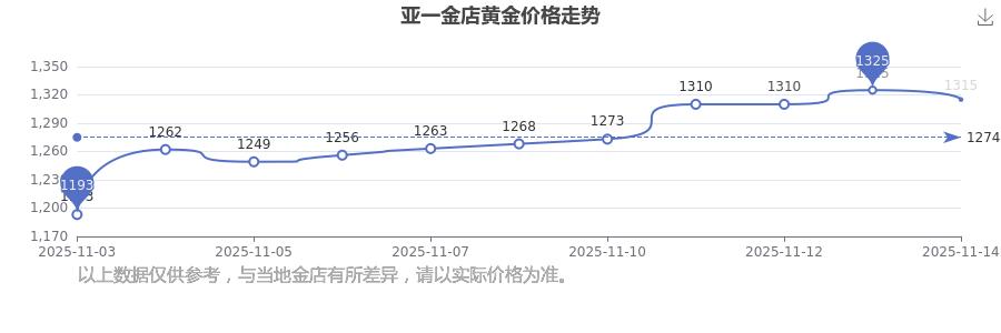 想知道今日黃金價格,目前黃金一克的價錢是多少呀?黃金是優(yōu)良的導電導熱材料,具備良好的導熱特性。因其化學穩(wěn)定性高、抗氧化性強,可用來制作高精度電子元件,所以在電子工業(yè)的特殊電路設計中經(jīng)常被使用。今日(2025年11月16日),亞一金店黃金價格:1315.0元/克。