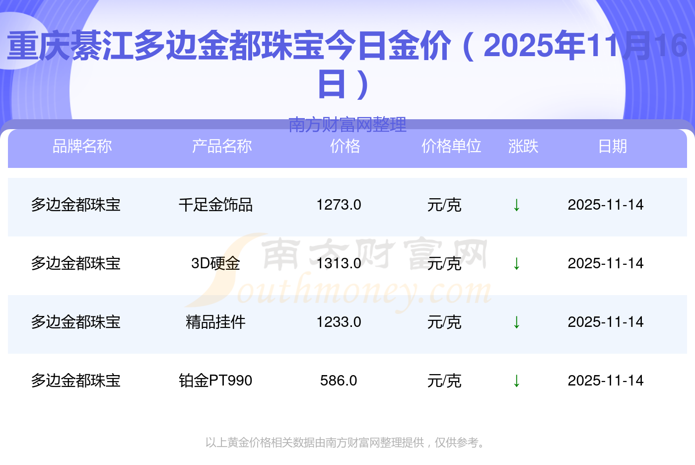 重慶綦江多邊金都珠寶今日金價(jià)查詢