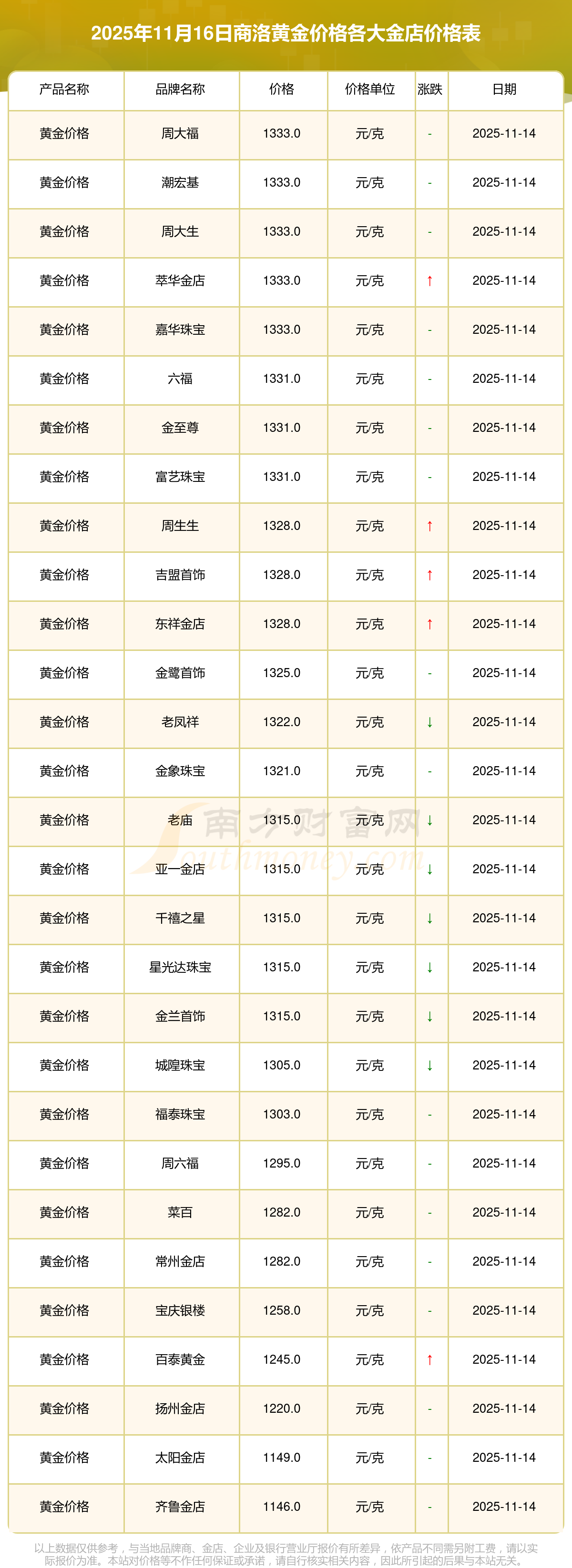 二、2025年11月16日今日商洛各金店黃金價格今天什么價格呢