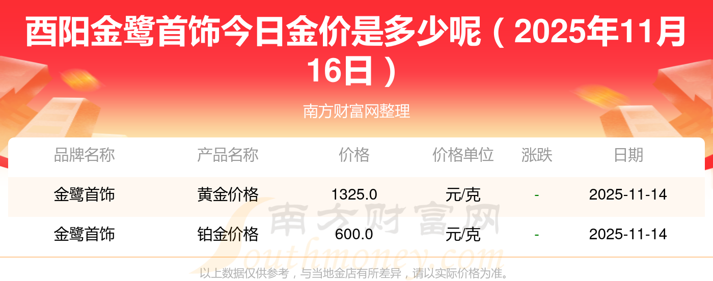 2025年11月16日金鷺首飾黃金價格多少錢一克_今日酉陽金鷺首飾金價表一覽
