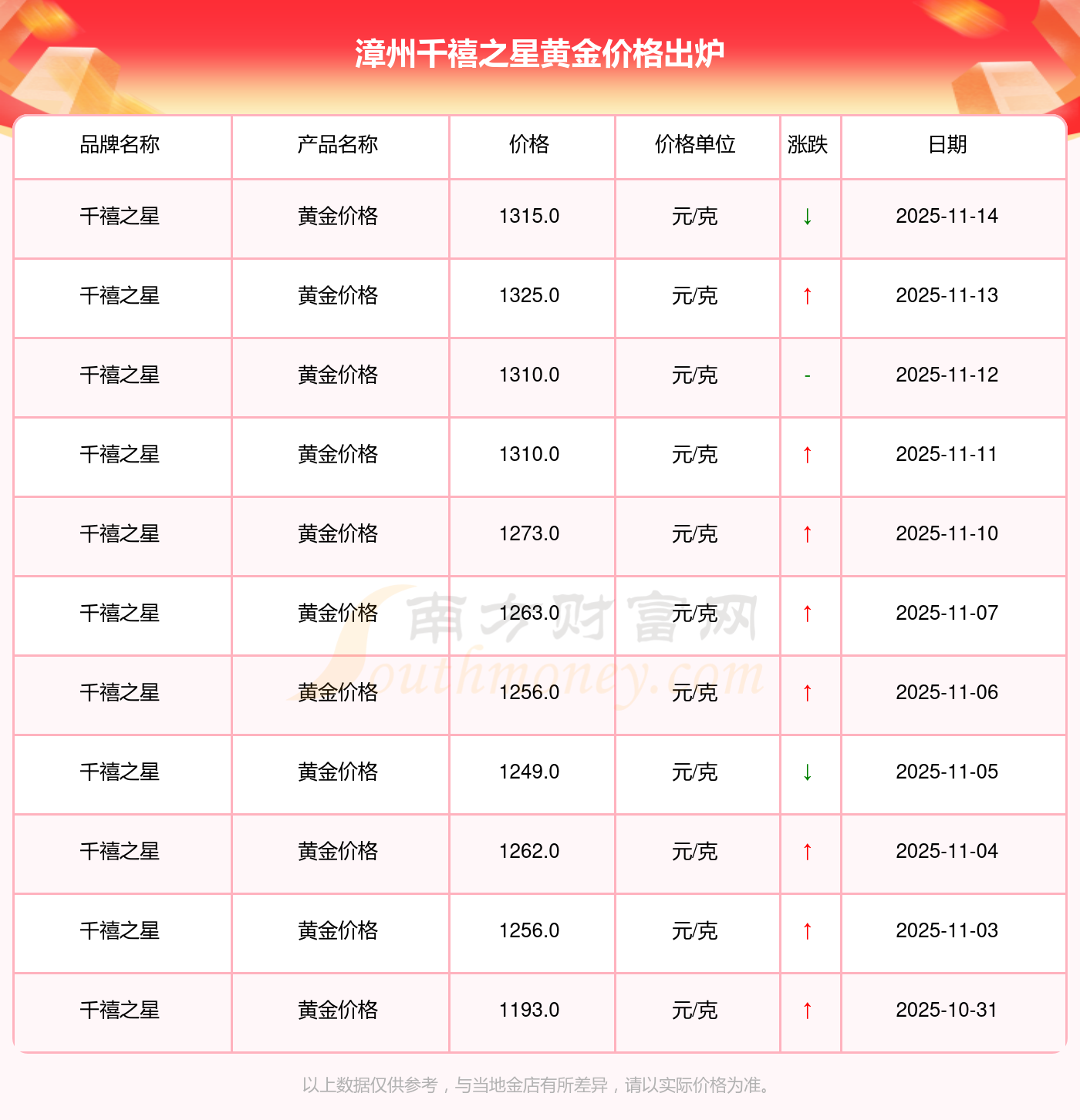 黃金每克價(jià)值多少錢,黃金各品類價(jià)格表,今日漳州千禧之星黃金價(jià)格圖表