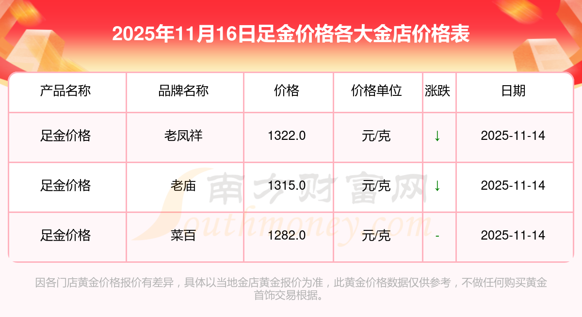 現(xiàn)在足金價格多少錢一克_2025年11月16日各金店足金價格表最新,一起來看看吧!