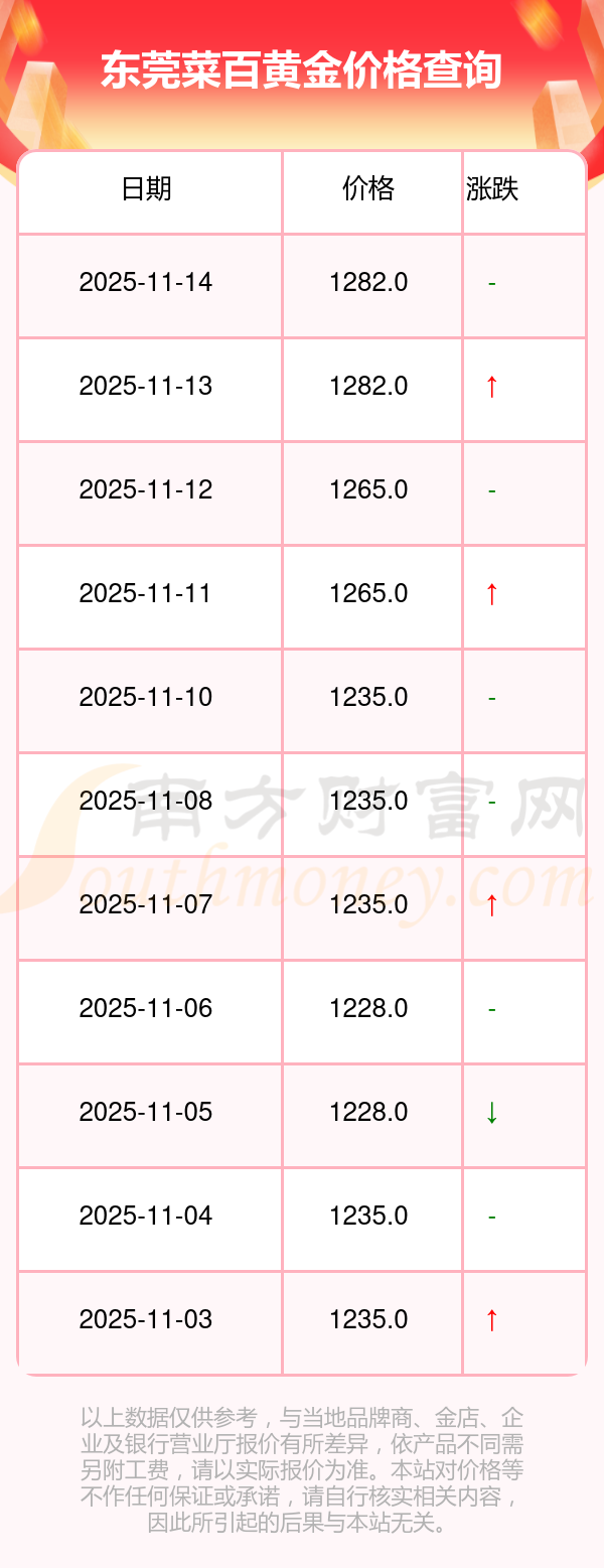 東莞菜百黃金價(jià)格在 2025年11月16日,其市場(chǎng)價(jià)格為 1282.0元/克。