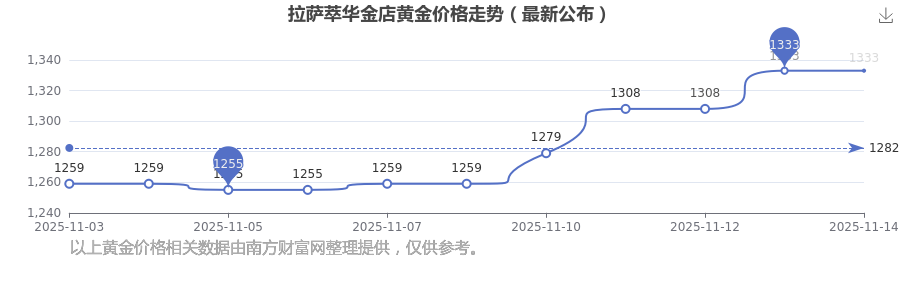 今日拉薩萃華金店黃金價(jià)格最新為:1333.0元/克。