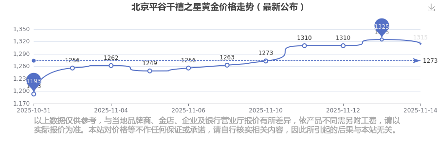 今日北京平谷千禧之星黃金價(jià)格最新為:1315.0元/克。