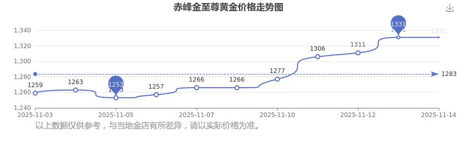 2025年11月16日當(dāng)天,赤峰金至尊黃金價(jià)格的單價(jià)是 1331.0元/克。