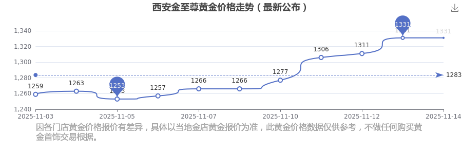 2025年11月16日西安金至尊黃金價格為1331.0元/克。